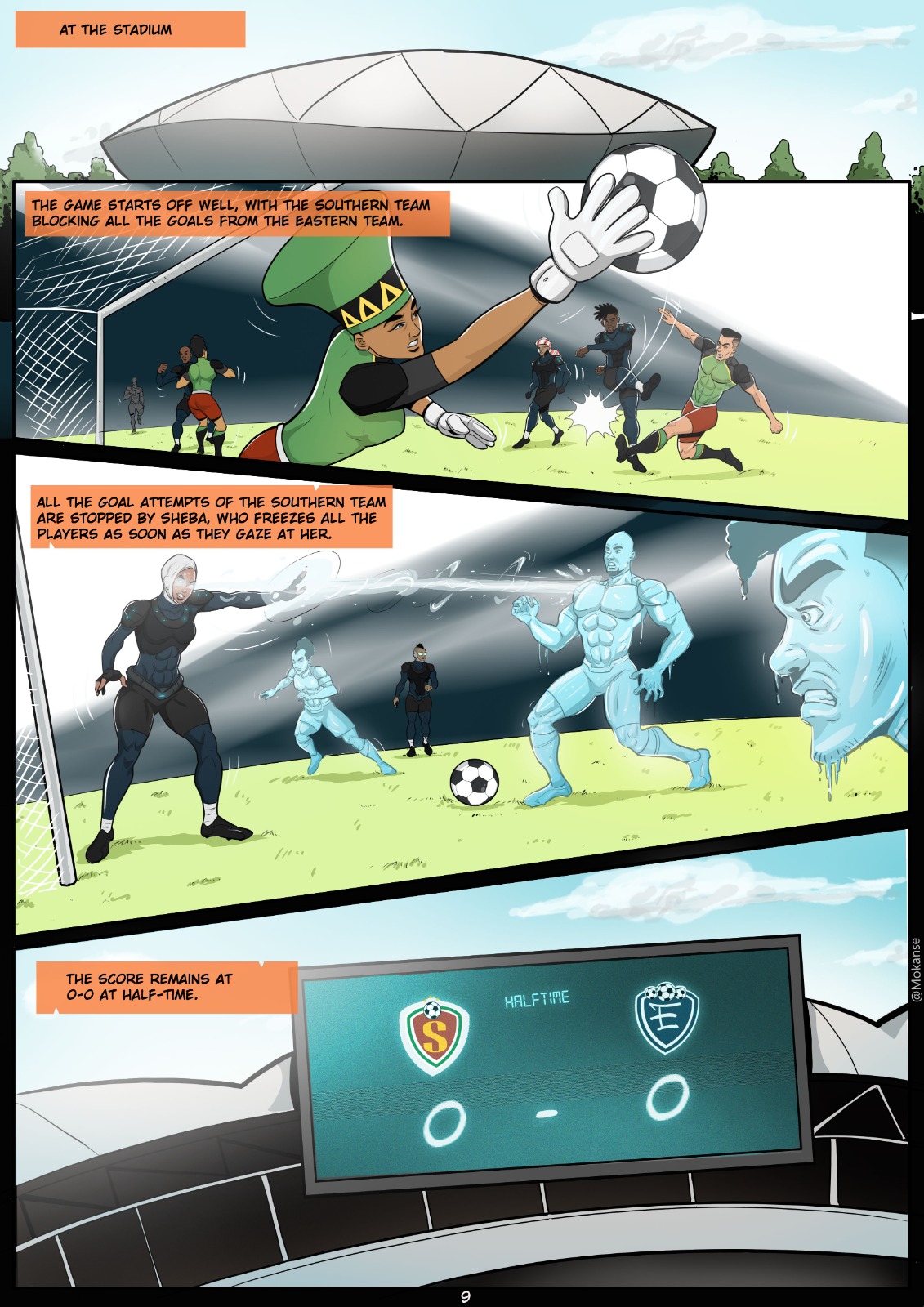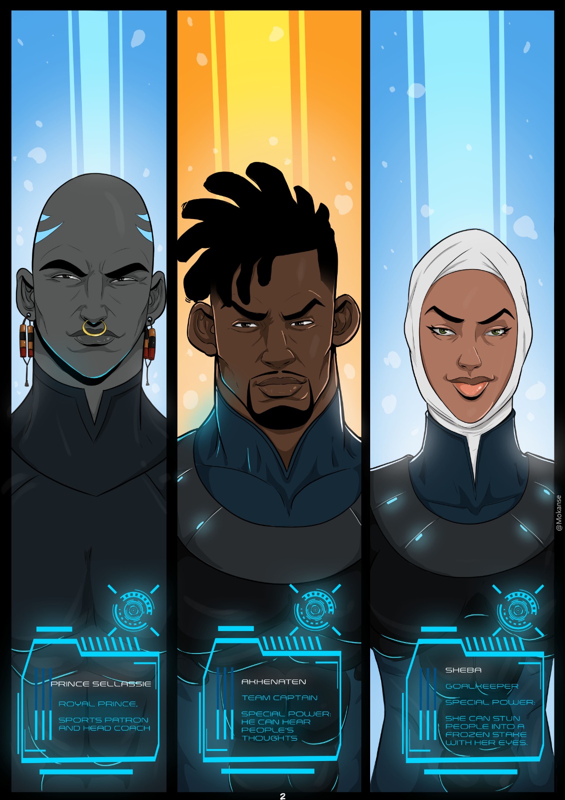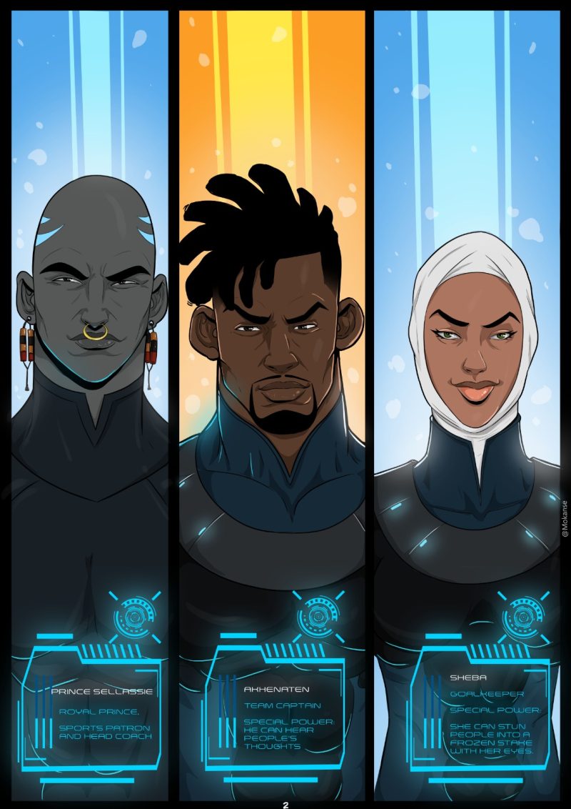 It is established that this team has a variety of powers, with the most notable belonging to the captain, Akhenaten- who can hear people’s thoughts, and the goalkeeper, Sheba- who can stun people into a frozen stake for a few seconds with just the gaze of her eyes.